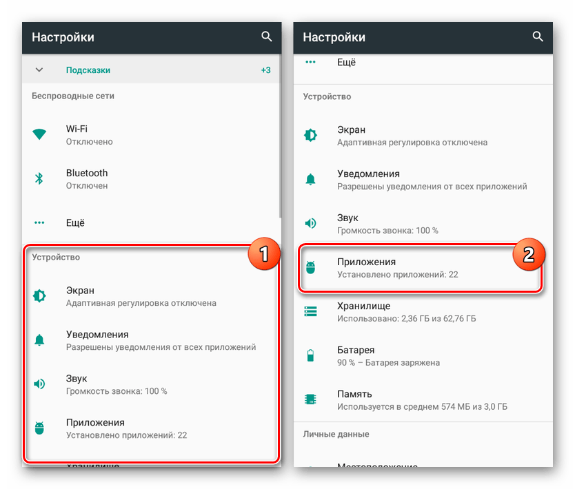- Перейдите в стандартное приложение «Настройки», найдите раздел «Устройство» и тапните по строке «Приложения».