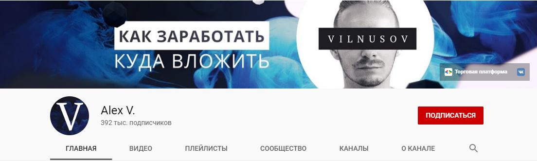 Основным местом продвижения бренда Alex V трейдер является канал на видеохостинге Youtube. В настоящее время на него подписаны 206 508 человек