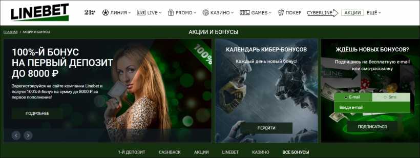 Наиболее ярко расписаны популярные спортивные дисциплины: футбол, волейбол, баскетбол и теннис. Отдельного внимания заслуживает линия для ставок на киберспорт, которая заметно шири того, что предлагают многие российские букмекеры. Пользователи БК «Linebet» могут заключать пари на такие видеоигры, как: CallofDute, LoL, CS:GO, киберфутбол, кибергольф, киберхоккей, кибербаскетбол, FIVE5, StarCraftII, RumbleStars и многие другие киберспортиные дисциплины.
