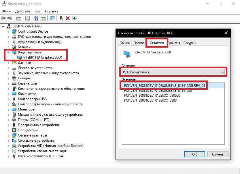На крайний случай найти необходимые драйверы можно либо на сайте производителя, либо задать поиск по специальным идентификаторам оборудования VEN и DEV, определить которые можно в «Диспетчере устройств» (через свойства на вкладке сведений), как показано на изображении выше.