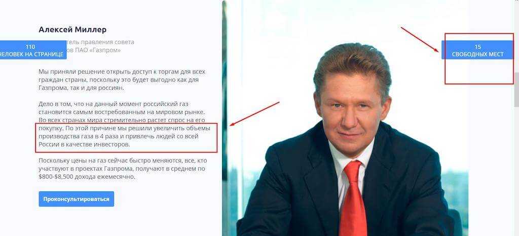 Фотография генерального директора, размещенная на платформе обманщиков, была украдена из его биографии. Бесполезно требовать возврата денег за неудачные «инвестиции в газ» у реальной компании. Они, конечно, посочувствуют, но отправят разбираться с этим вопросом в правоохранительные органы.
