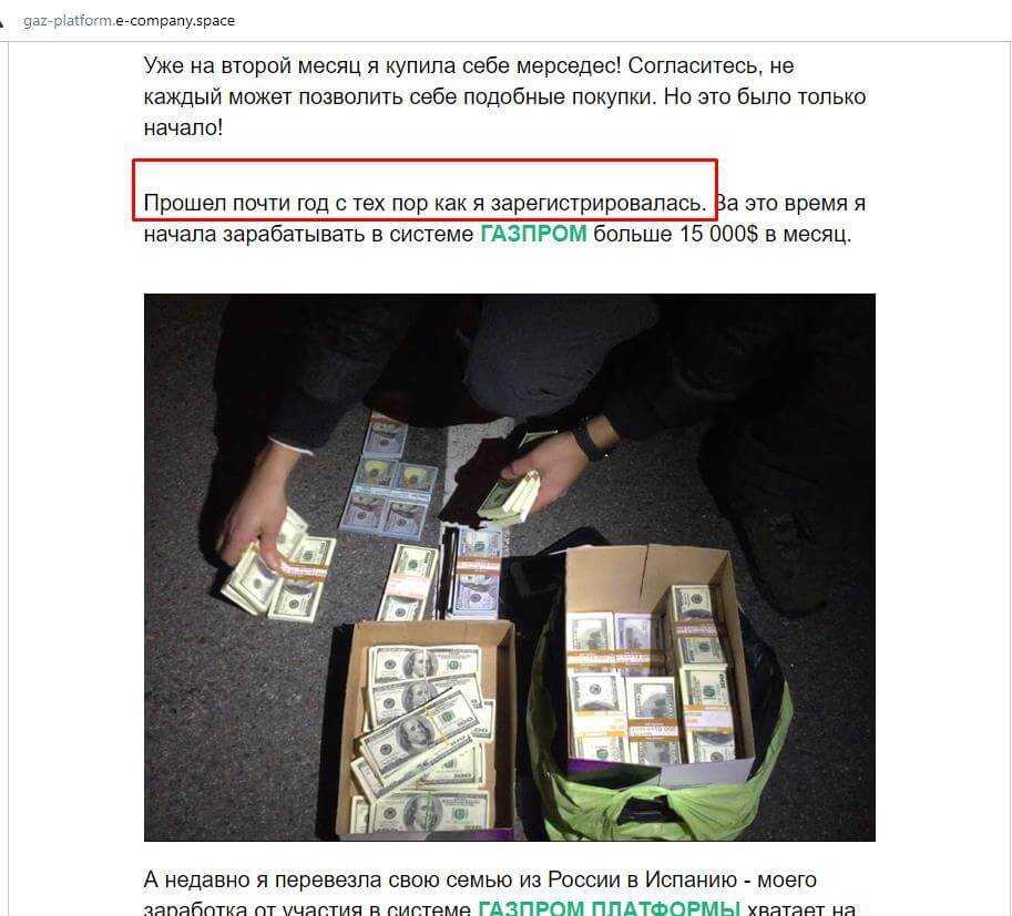 Некоторые рекламные статьи откровенно абсурдны, например, на https://gazpr-platform.kz написано, что торговать российским газом разрешили жителям Казахстана. Видимо, мошенники спешат охватить всю территорию постсоветского пространства.