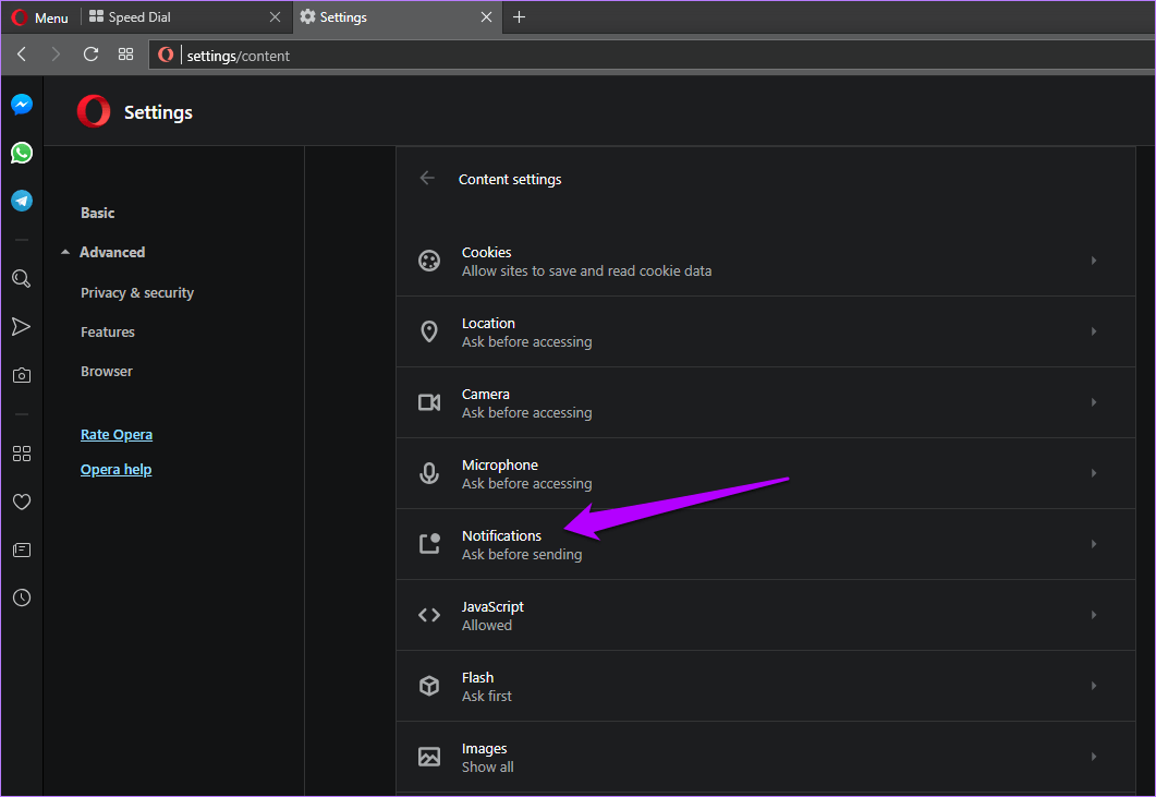 Веб-уведомления представляют собой реальную угрозу. Они отображаются на рабочем столе даже при свернутом браузере. Используйте приведенные ниже шаги, чтобы убедиться, что сайты требуют вашего явного разрешения ниже, они могут бомбардировать вас с помощью уведомлений.