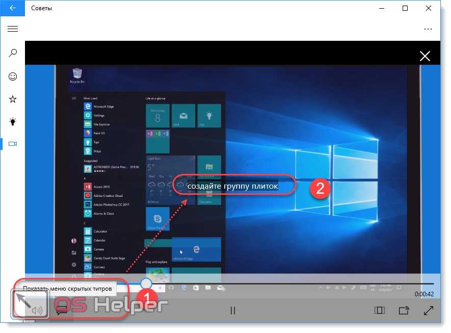 - Так как это официальная информация от Microsoft, то аудио будет на английском. Чтобы включить русские субтитры, кликните по значку «Меню скрытых титров» и выберите «Русский». После этого текст будет отображаться на экране.