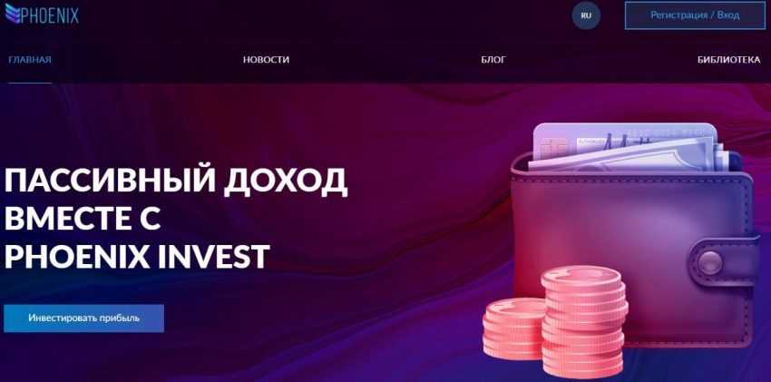 На главной странице сайта нам обещают то, о чём мечтает практически каждый человек — пассивный доход. Для того, чтобы получать прибыль от своих сбережений, нужно, конечно же, просто вложить их в Phoenix-Invest.