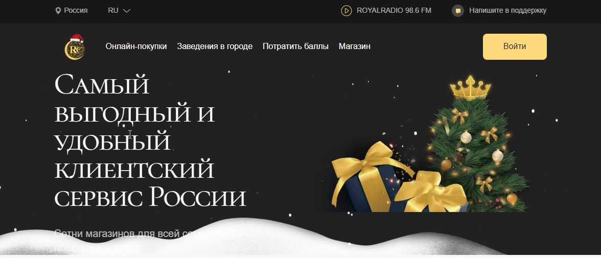 На момент написания обзора веб-ресурс RC Group был оформлен в праздничном стиле. На главной странице красуется привлекательная надпись о выгодных скидках на фоне новогодней елки с подарками. Интерфейс поддерживает русский и английский язык.