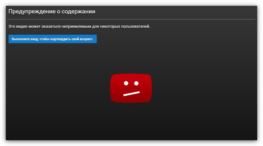 ). Если вы не вошли под своей учетной записью, при его запуске, вы увидите окно с ошибкой «Это видео может оказаться неприемлемым для некоторых пользователей. Выполните вход, что бы подтвердить свой возраст