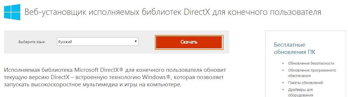 Ссылка для скачивания дистрибутивного пакета DirectX