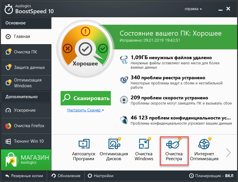Вручную это сделать невозможно. Значит, нужно прибегнуть к услугам сторонних программ. Их довольно много, но лучшей можно считать Auslogics BoostSpeed. Скачать ее можно на официальном сайте разработчика. Установка простая. А инструкция по очистке реестра такая.