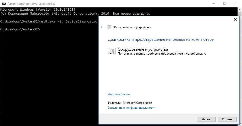 Инструмент, о котором идет речь в разделе, создан специально для того, чтобы исправить ошибки подключения оборудования. Таким образом он с большой долей вероятности может помочь и сейчас. Он может присутствовать в меню «Параметры» Windows, но часто пишут, что его там нет. Чтобы точно запустить инструмент, стоит в командную строку вставить msdt.exe -id DeviceDiagnostic. Остается только следовать подсказкам мастера.