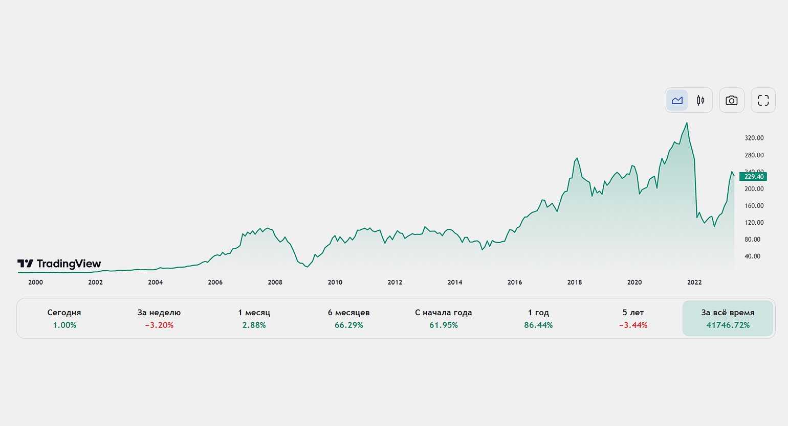 Чаще всего акции покупают, чтобы заработать на росте их стоимости. Как правило, бумаги крупных компаний всегда дорожают в долгосрочной перспективе и быстро восстанавливаются даже после сильных просадок. Например, акции «Сбера» за 10 лет выросли на 109,32%, несмотря на кризисы 2020 и 2022 годов.