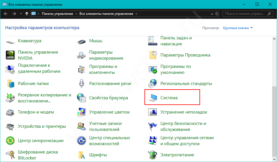 Откройте «Панель управления» и откройте «Система»