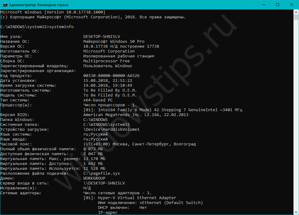 2. Напечатайте команду systeminfo.