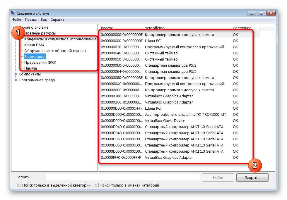 Через «Аппаратные ресурсы» определяется код устройства. Именно он будет записываться в журнал событий, если вдруг произойдет какой-то сбой, связанный с этим оборудованием. Такое меню, разделенное на категории, позволит проверить соответствие устройств ресурсам, чтобы быть в курсе проблем, связанных с работой компьютера. Здесь же показывается и текущее состояние самого комплектующего.