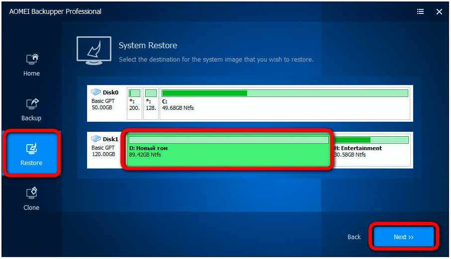 Восстановление резервной копии Windows на другом компьютере программой AOMEI Backupper