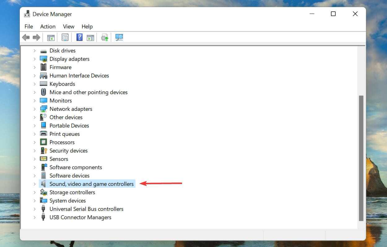 Найдите и дважды щелкните запись Звуковые, видео и игровые контроллеры .