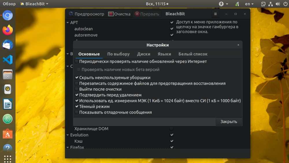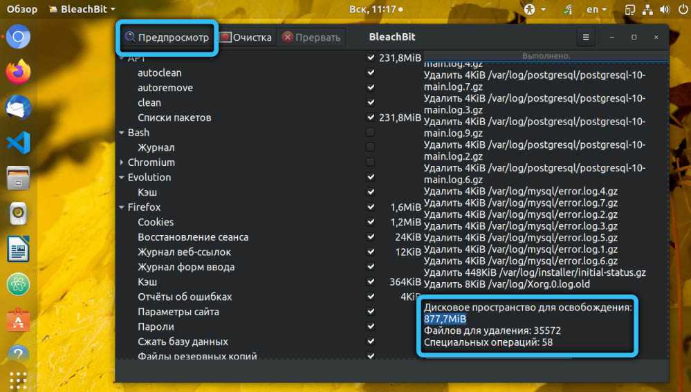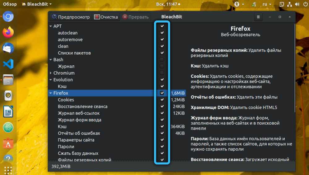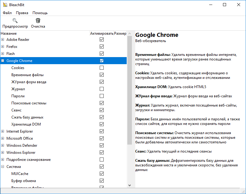 Базовая очистка диска в Bleachbit мало чем отличается от той, что реализована в других аналогичных программах: