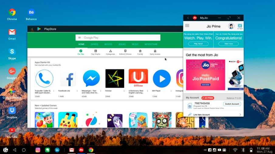 PrimeOS поставляется с базовым набором приложений, в который входят Google Chrome, Ютубе, Часы, Календарь, Плеер, Галерея, Загрузчик, Менеджер игр, Контакты и, конечно же, Play Store.