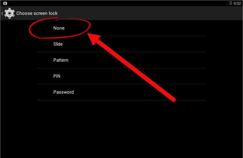 В поле «Тип блокировки экрана» вы увидите все защитные блокировки, которые выбраны у вас на данный момент. Нажмите на эту опцию, чтобы отключить их все.