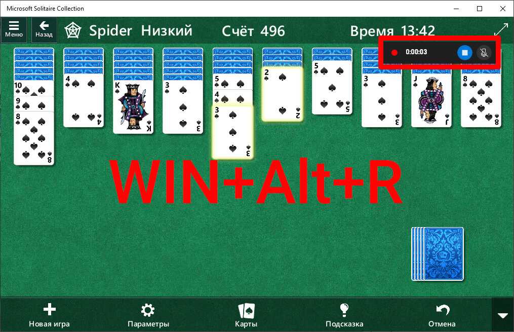 • Для начала и окончания записи используйте сочетание клавиш Win + Alt + R
