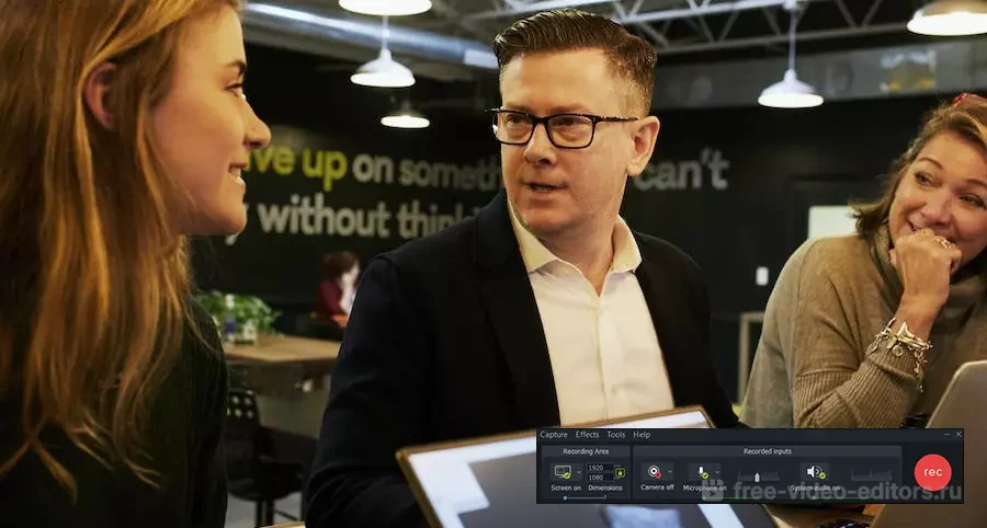 Вы сможете без проблем сделать демонстрационное видео для своего приложения или зайдите на веб-конференцию для резервного копирования и последующего анализа. Голосовые комментарии и веб-камера также поддерживаются для включения в запись.