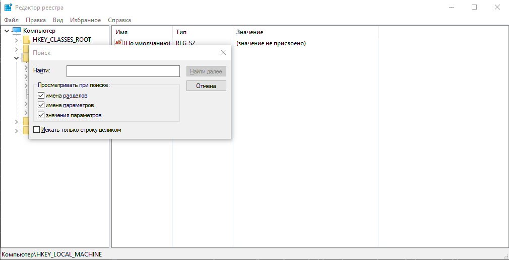 Для ручной проверки компьютера откройте реестр: