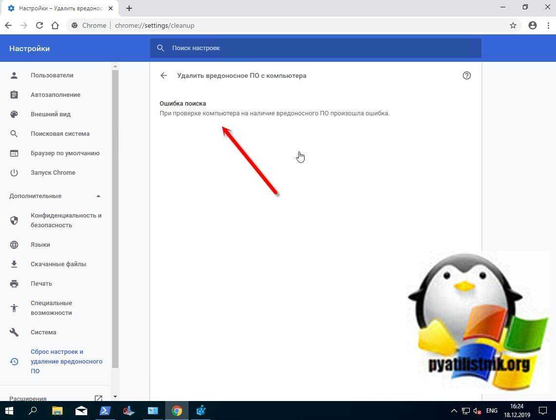 это даст запрет на выполнение software reporter tool в системе и будет вызывать ошибку при запуске «При проверке компьютера на наличие вредоносного ПО произошла ошибка«