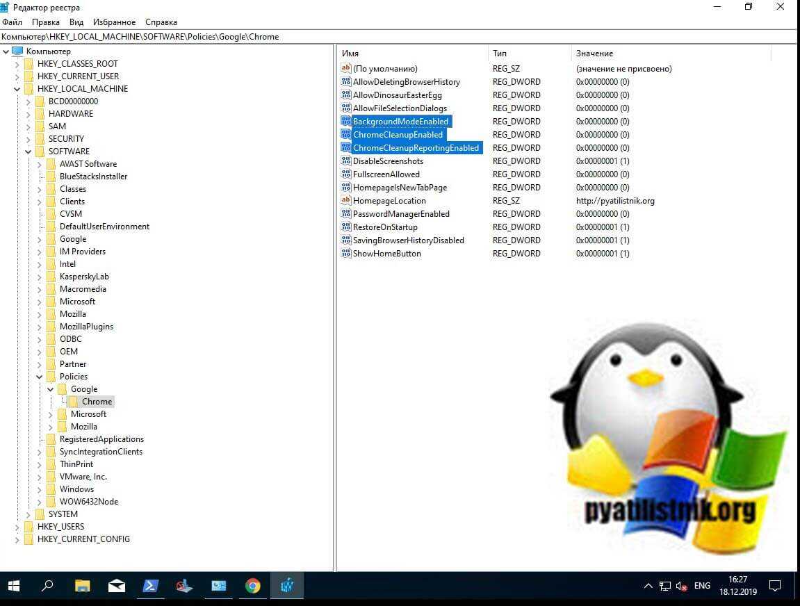 Создайте Параметр Dword (32-бита) с названием ChromeCleanupEnabled и значением. Он определяет, может ли Software Reporter Tool работать в системе. Параметр ChromeCleanupReportingEnabled определяет, будут ли результаты отправлены в Google.