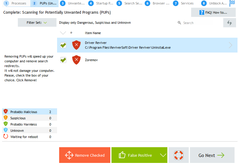 UnHackMe выполнит все указанные шаги, проверяя по своей базе, всего за одну минуту.