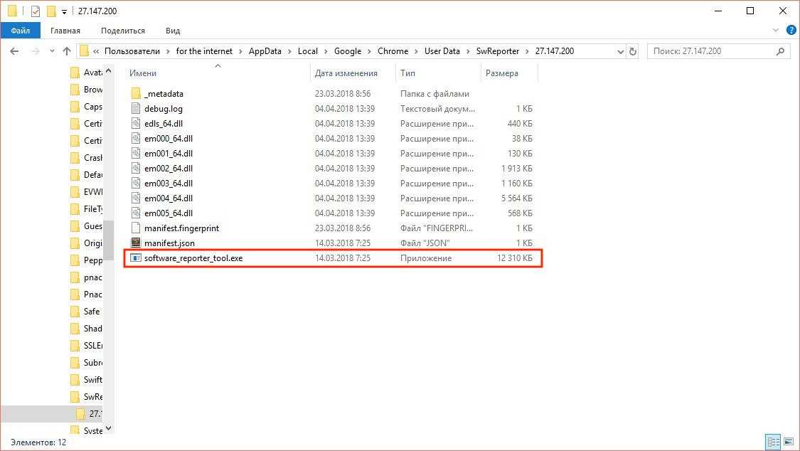 C:UsersИМЯ ПОЛЬЗОВАТЕЛЯAppDataLocalGoogleChromeUser DataSwReporterВЕРСИЯsoftware_reporter_tool.exe