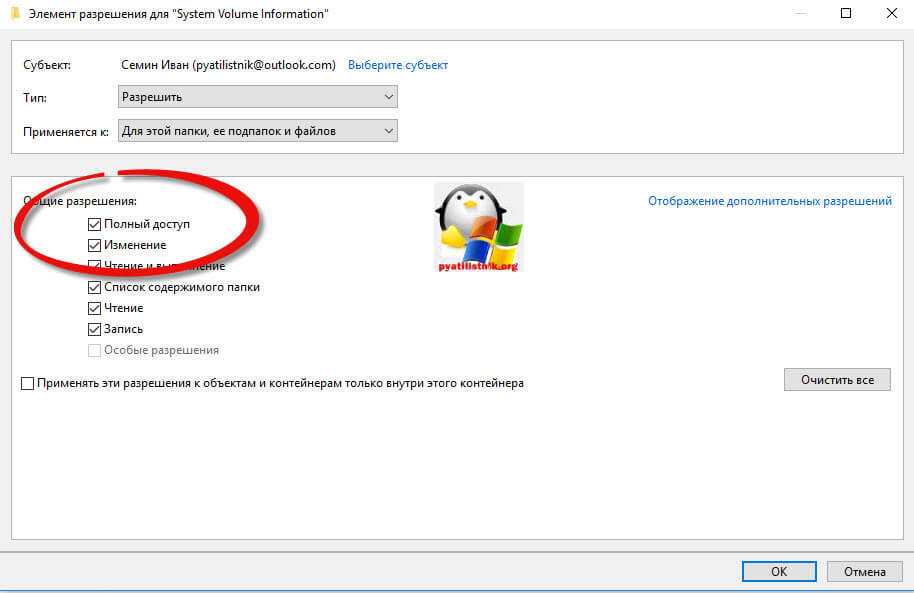 Мы с вами понимаем теперь, что по умолчанию у вас нет достаточных прав для доступа в system volume information, но если вы администратор системы, то вам не составит труда, дать себе данные права.