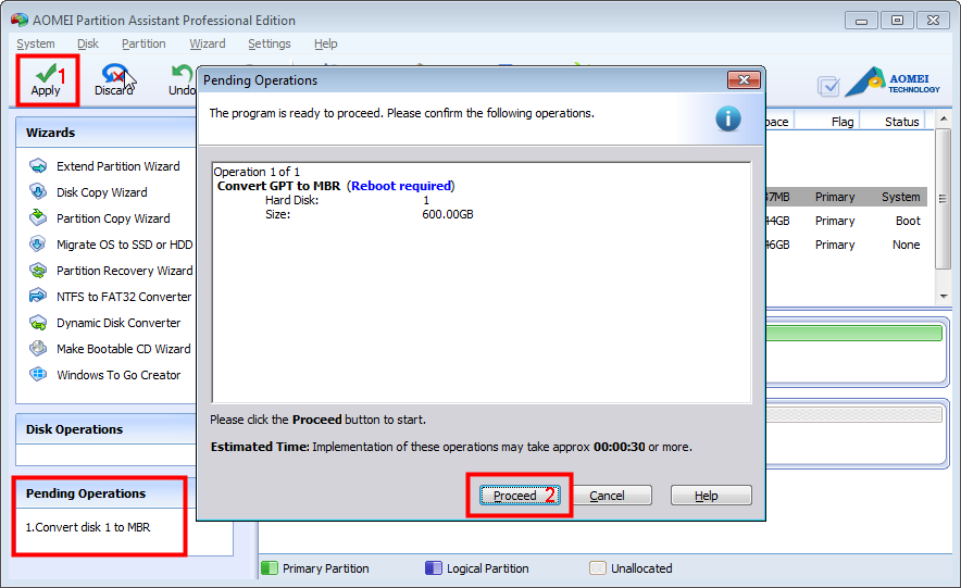 После того как было выполнено ручное конвертирование в MBR, требуется: