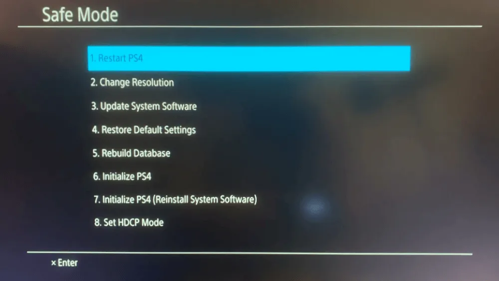 - Затем загрузите консоль PS4 в безопасном режиме и выберите вариант 7 Инициализировать PS4 (переустановить системное программное обеспечение).Инициализировать PS4 (переустановить системное программное обеспечение)