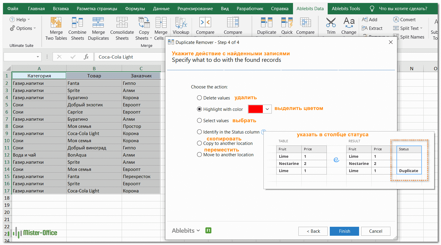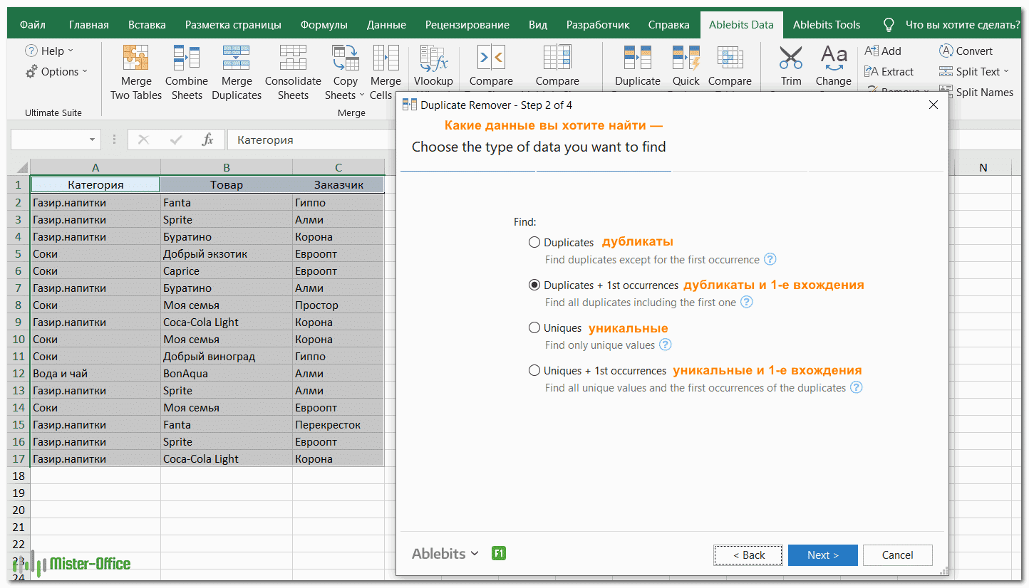 Мастер удаления дубликатов — больше возможностей для поиска дубликатов в Excel.