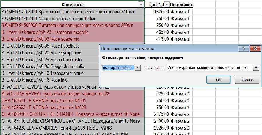 Повторяющиеся значения в Excel
