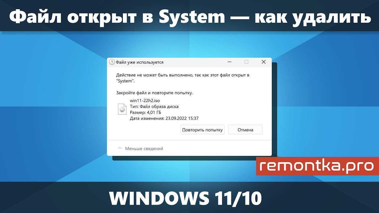 Если файл открыт в проводнике, как его удалить? Используемый объект в Windows нельзя переместить, переименовать, изменить или стереть. Для начала его надо закрыть и завершить связанные с ним процессы. Ещё или ещё вариант — отключить сам проводник .
