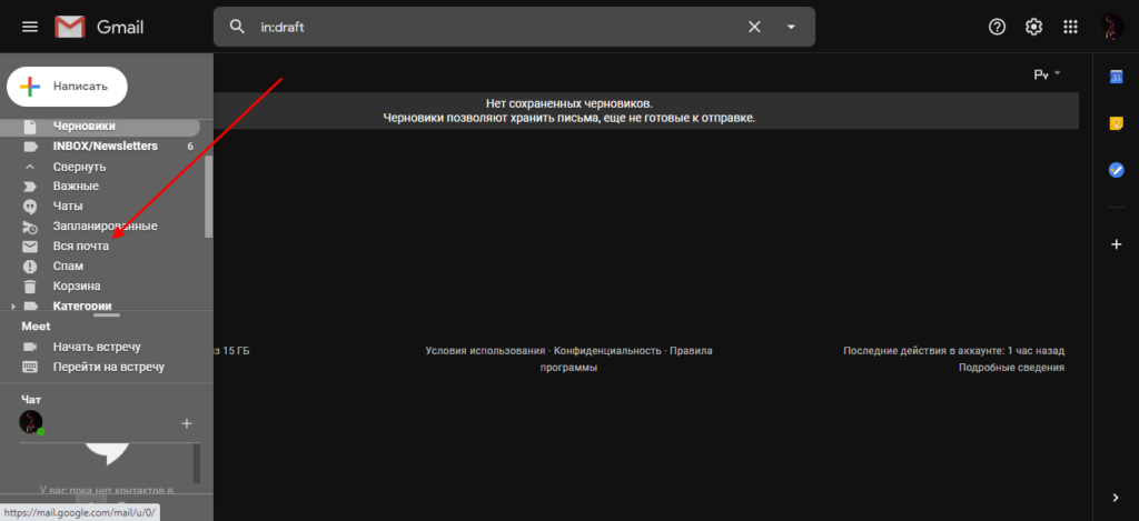 ». Отображается вся почта в вашей системе Gmail, включая архивные сообщения: