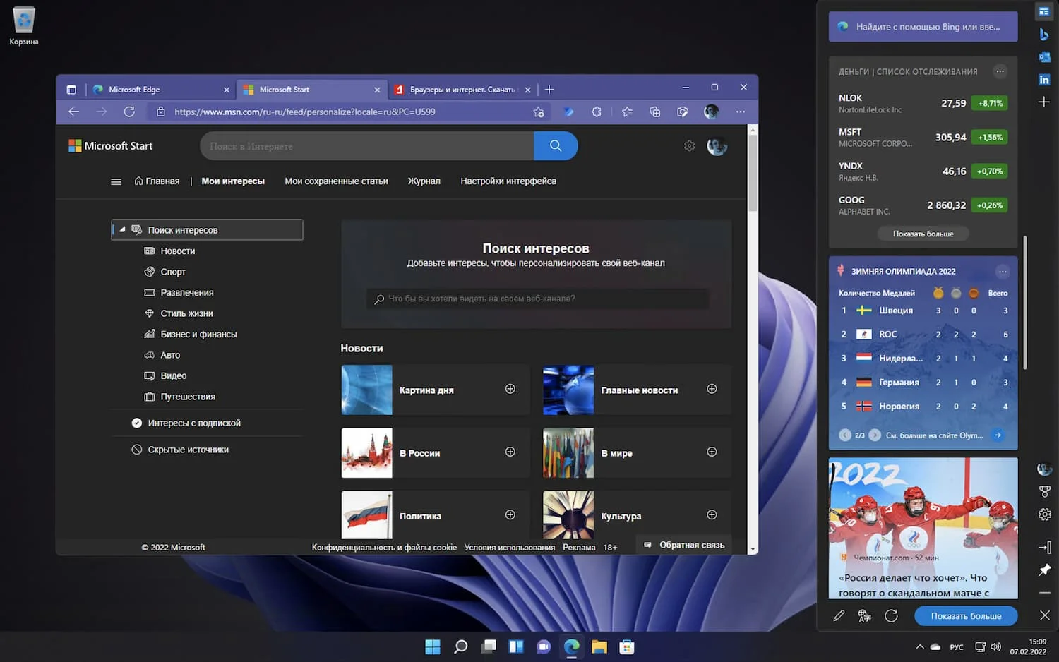 Там вы можете изменить язык, включить или отключить такие модули, как «Спорт», «Пробки» или «Погода», а также сообщить Майкрософт о своих интересах, чтобы персонализировать новостную ленту.