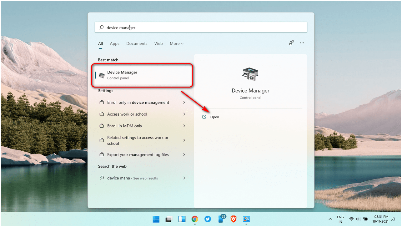 Нажмите клавишу Windows и найдите Диспетчер устройств.