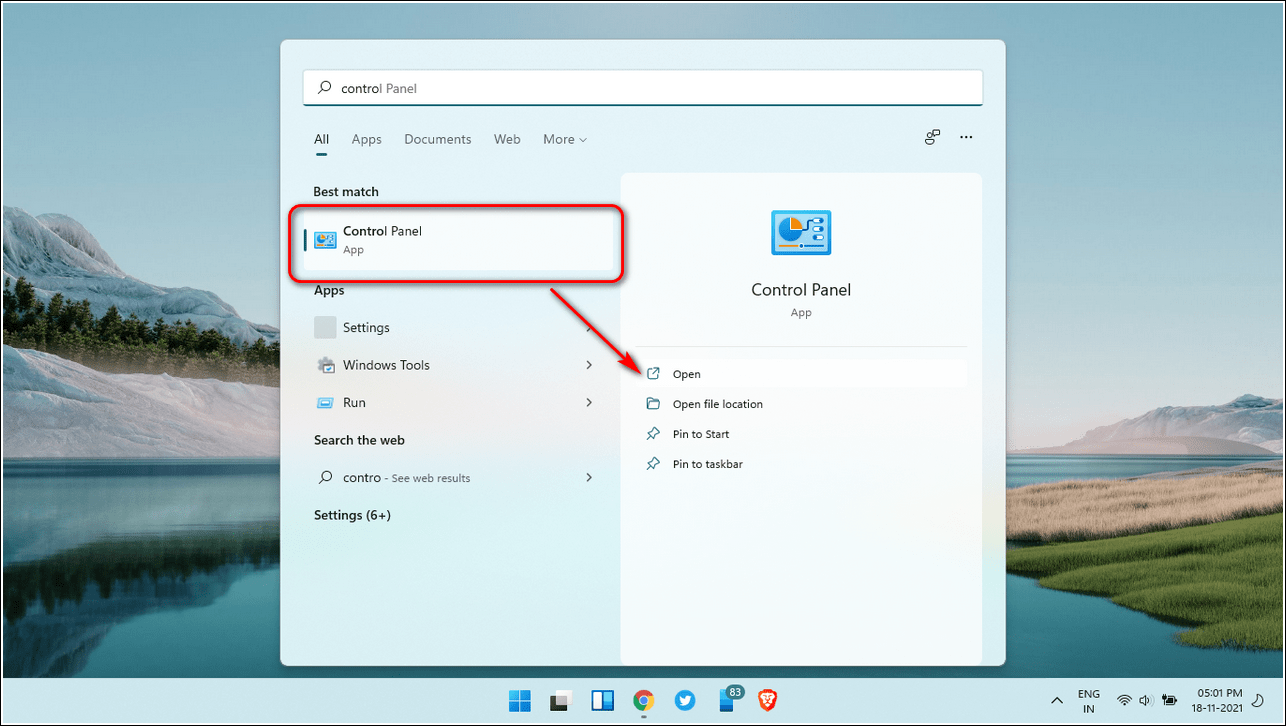 - Откройте Панель управления.