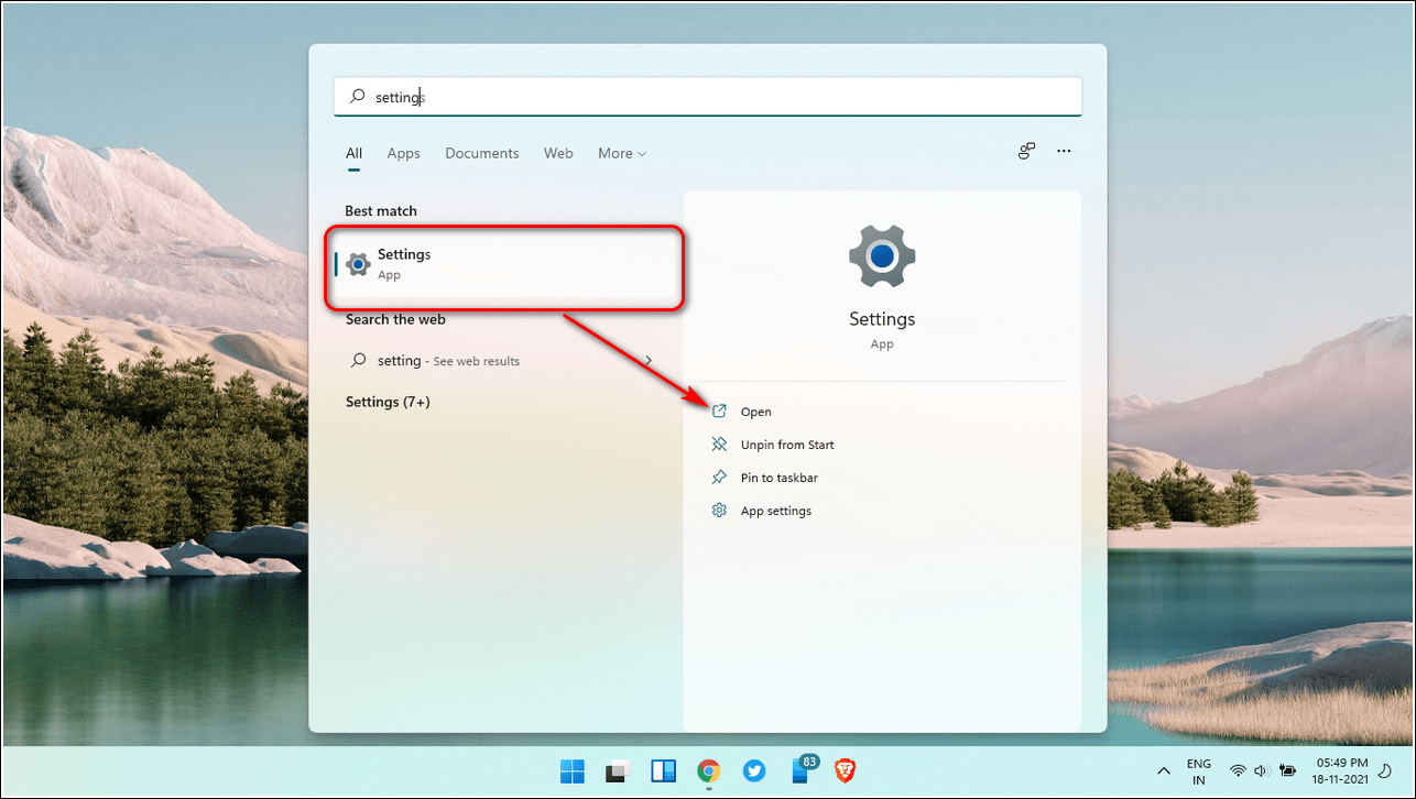 Нажмите клавишу Windows и найдите Параметры.
