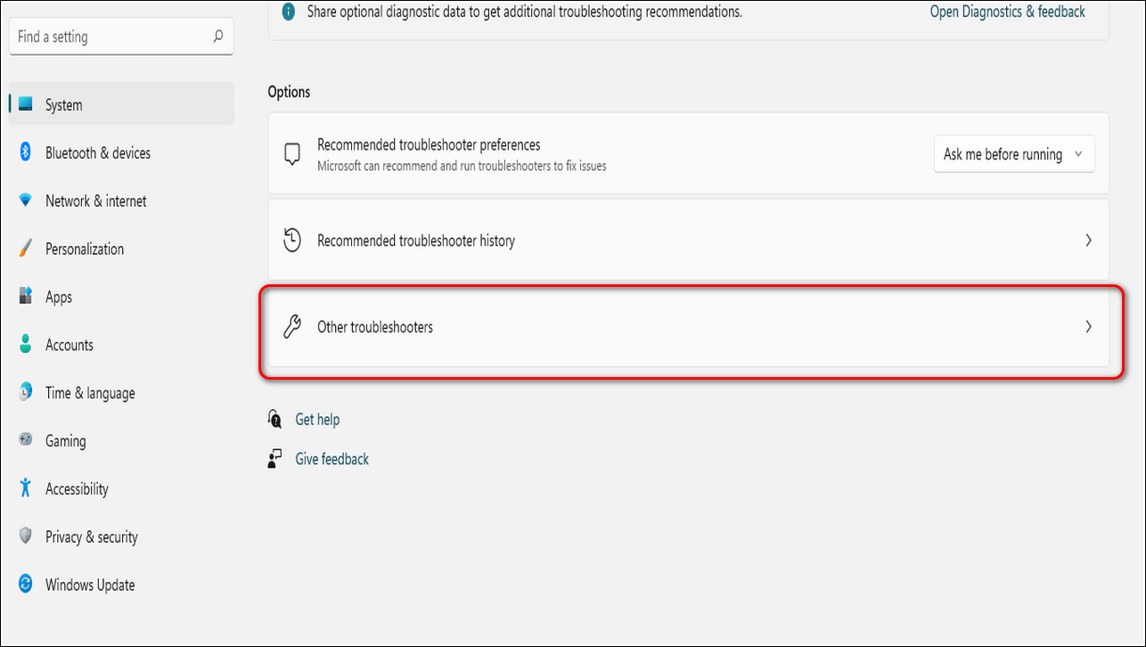 Щелкните Другие средства устранения неполадок.