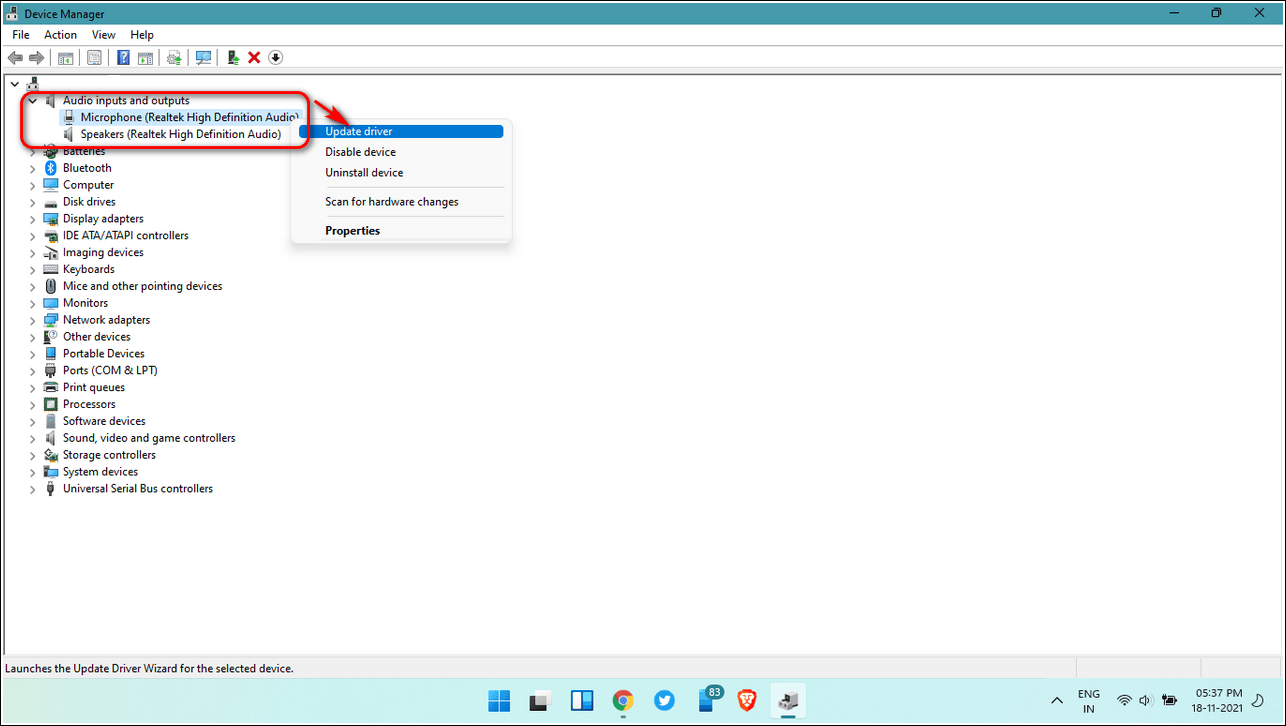 - Щелкните правой кнопкой мыши микрофон и выберите «Обновить драйвер».
