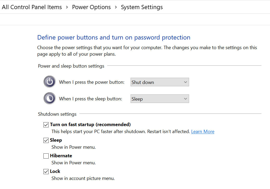 Обратите также внимание на режим «быстрой загрузки» (Fast Startup) на первом скриншоте. В этом режиме (по умолчанию он, кстати, включен) при выключении компьютера Windows сохраняет состояние ядра в файл на системном диске
