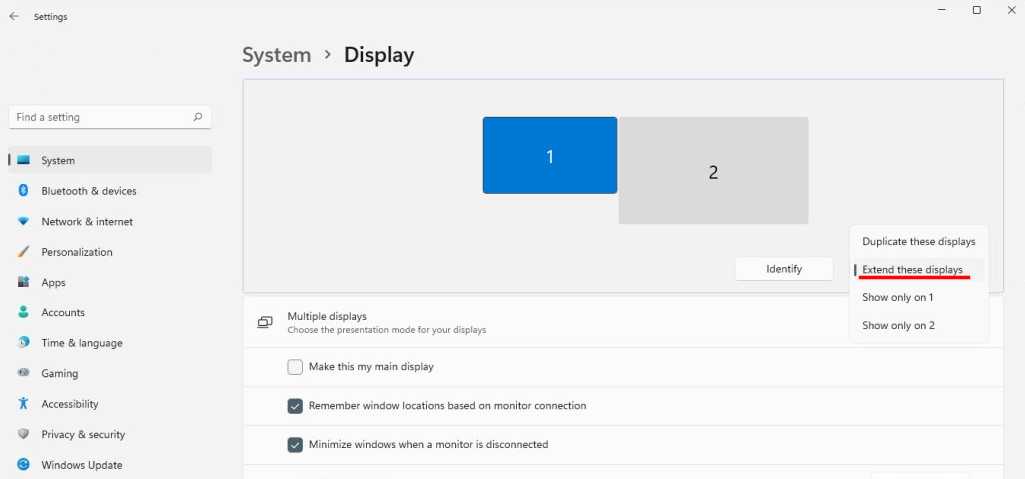 В нижней части разверните выпадающее меню, в котором выберите опцию «Расширить эти экраны».