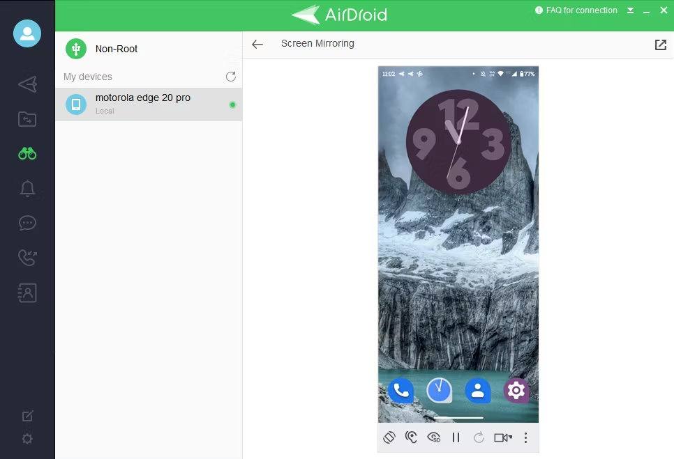 Вам не нужен USB-кабель для отображения экрана вашего телефона Android на ПК. Технически Scrcpy имеет беспроводной режим, в котором вы можете подключить свое устройство Android и ПК через одну и ту же сеть Wi-Fi. Но для этого требуется небольшое техническое ноу-хау. Не волнуйтесь; есть более простые способы просмотра экрана телефона на компьютере через беспроводное соединение, например AirDroid.