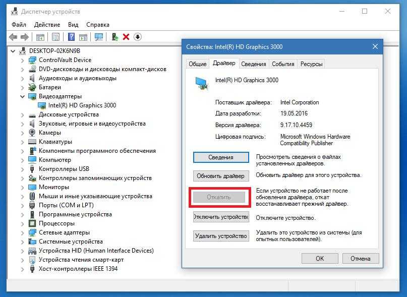 Примечание: если ошибка возникает именно после обновления драйвера, в «Диспетчере устройств» выполните откат.