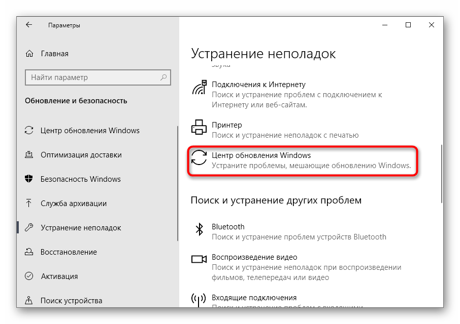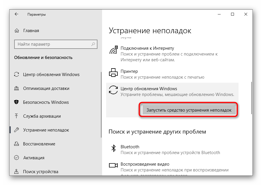 Выберите категорию «Обновление и безопасность», где и находится интересующее вас средство устранения неполадок.