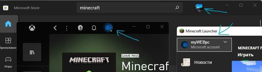 Вы должны быть авторизованы под одной и той же учетной записи в Microsoft Store, Xbox и Minecraft Launcher. Откройте каждое приложение и убедитесь, что авторизация везде под одним аккаунтом.
