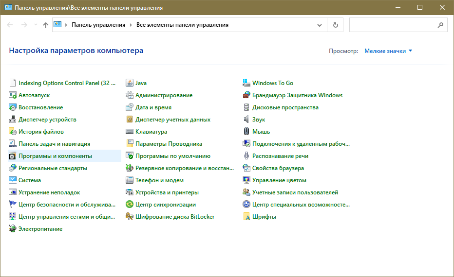 В открывшейся утилите нужно найти раздел, который отвечает за программы и их компоненты. Его расположение можно увидеть на изображении ниже: